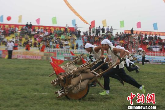 搜狐:高清圖 臨沂國(guó)際馬拉松 奧運(yùn)冠軍推獨(dú)輪車助陣