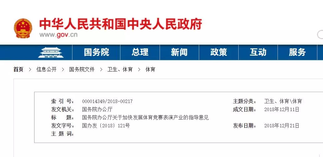 近日,國務(wù)院辦公廳印發(fā)了《關(guān)于加快發(fā)展體育競賽表演產(chǎn)業(yè)的指導(dǎo)意見》(以下簡稱《意見》,全文附后)。